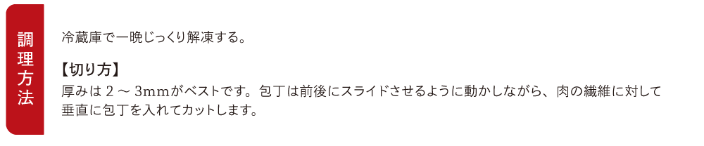低温調理によるジューシーな肉質と濃い肉の旨みが特徴です。