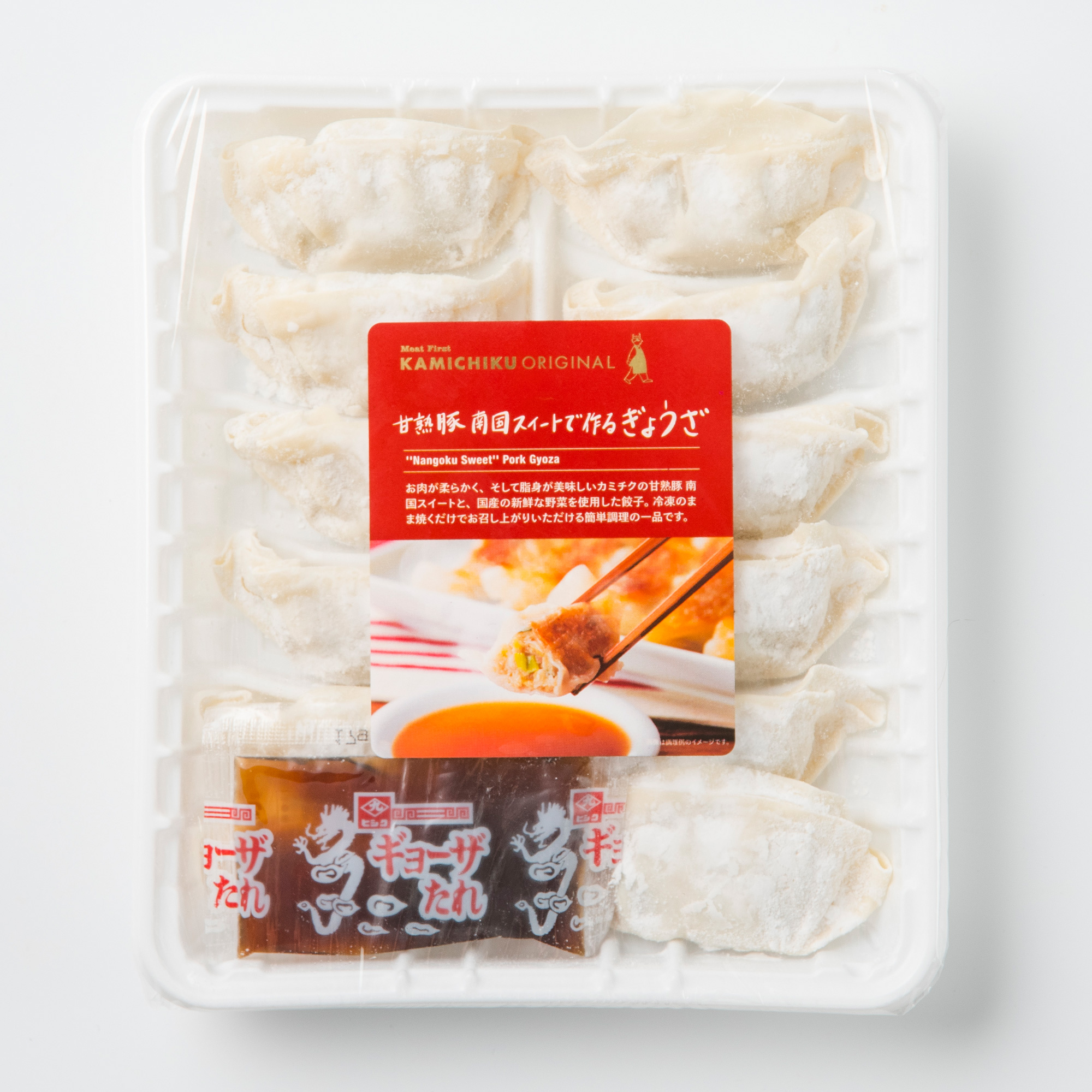 お肉が柔らかく、そして脂身が美味しいカミチクの甘熟豚 南国スイートと、国産の新鮮な野菜を使用した餃子。
