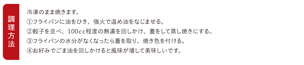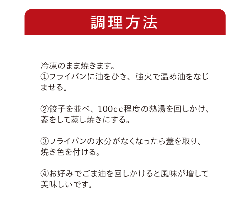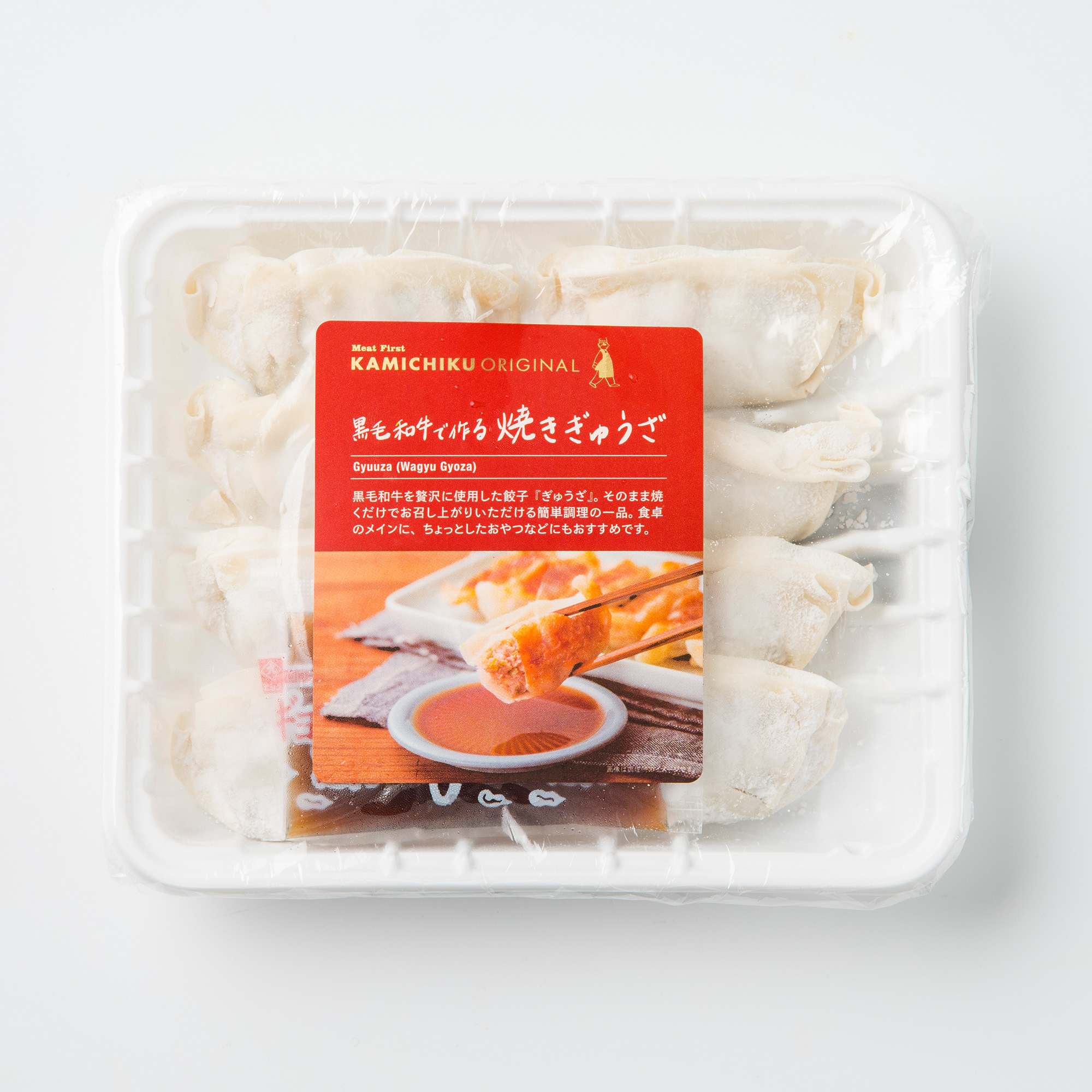 餃子[野菜(国産(キャベツ、玉ねぎ、ニラ、ニンニク))、皮(小麦粉、小麦蛋白、植物油脂、粉末油脂、食塩)、牛肉、牛脂、小麦粉加工品、醤油、オイスターソース、ごま油、砂糖、料理酒、発酵調味料、食塩、鰹エキス、胡椒、でん粉/加工でん粉、トレハロース、調味料(アミノ酸等)、炭酸Ca、pH調整剤、酸化防止剤(ビタミンE)、(一部に小麦・乳成分・牛肉・大豆・ごま・豚肉・鶏肉・ゼラチンを含む)]、たれ[醤油(国内製造)、醸造酢、砂糖、発酵調味料、食塩/調味料(アミノ酸等)、カラメル色素、甘味料(ステビア)、(一部に小麦・大豆を含む)]